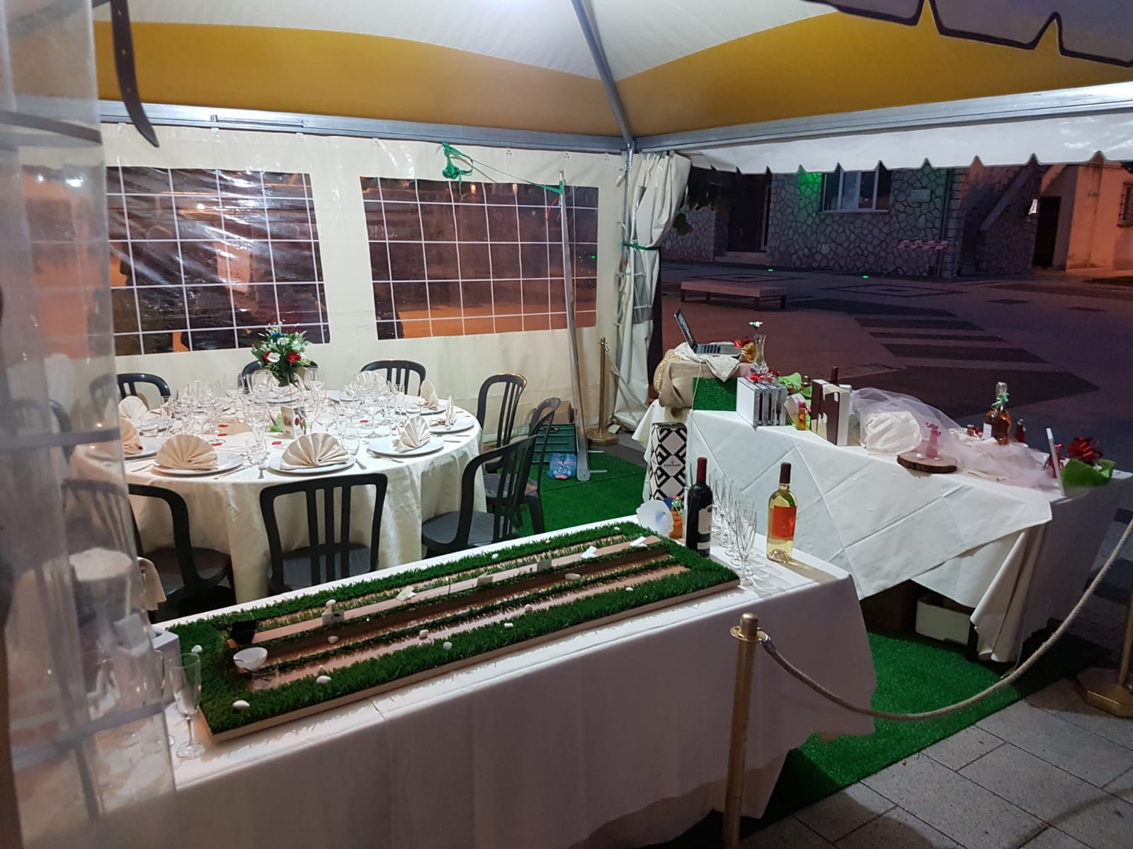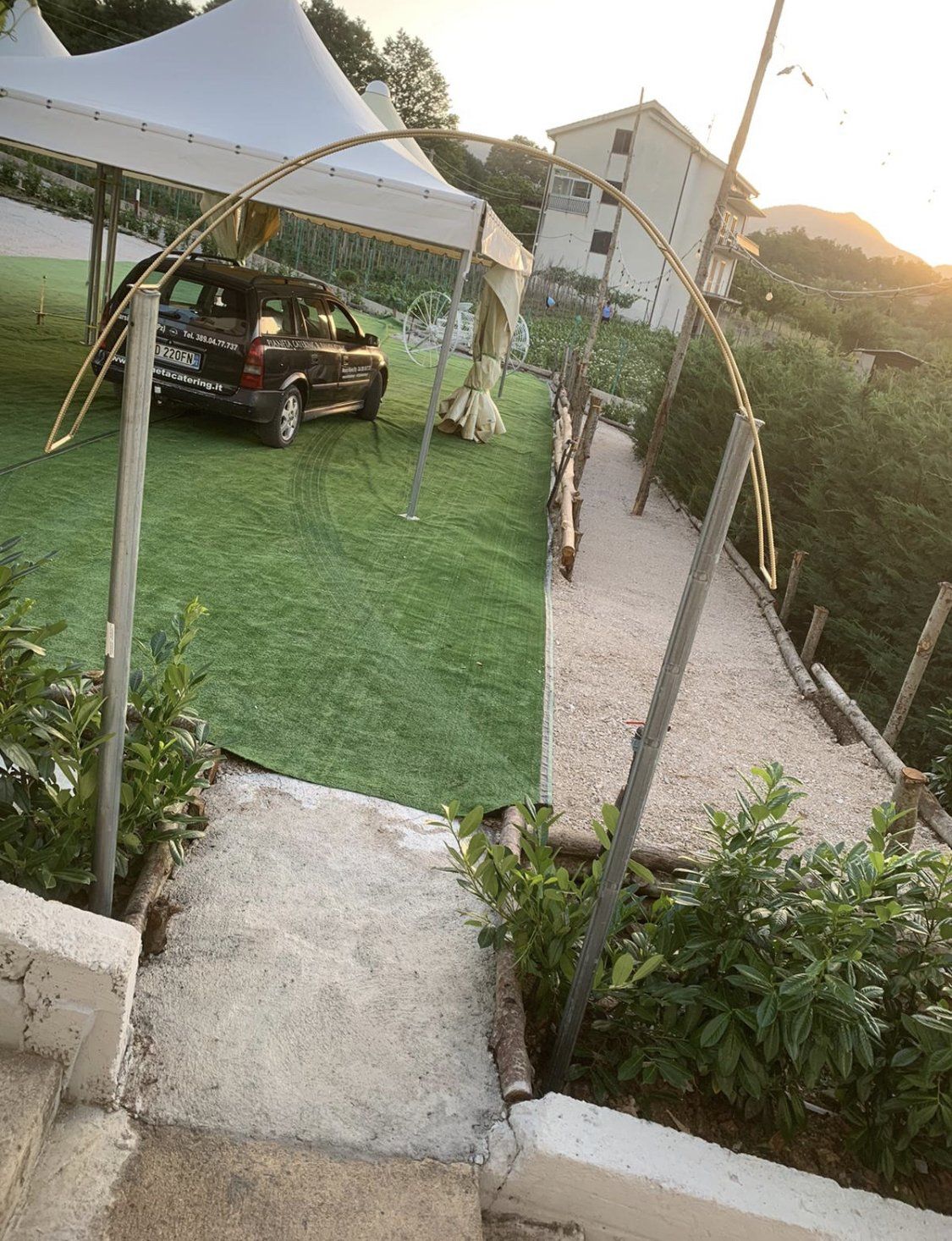 ⛔️⛔️⛔️ Tac… si parte per l’allestimento torta sotto le arcate…Button